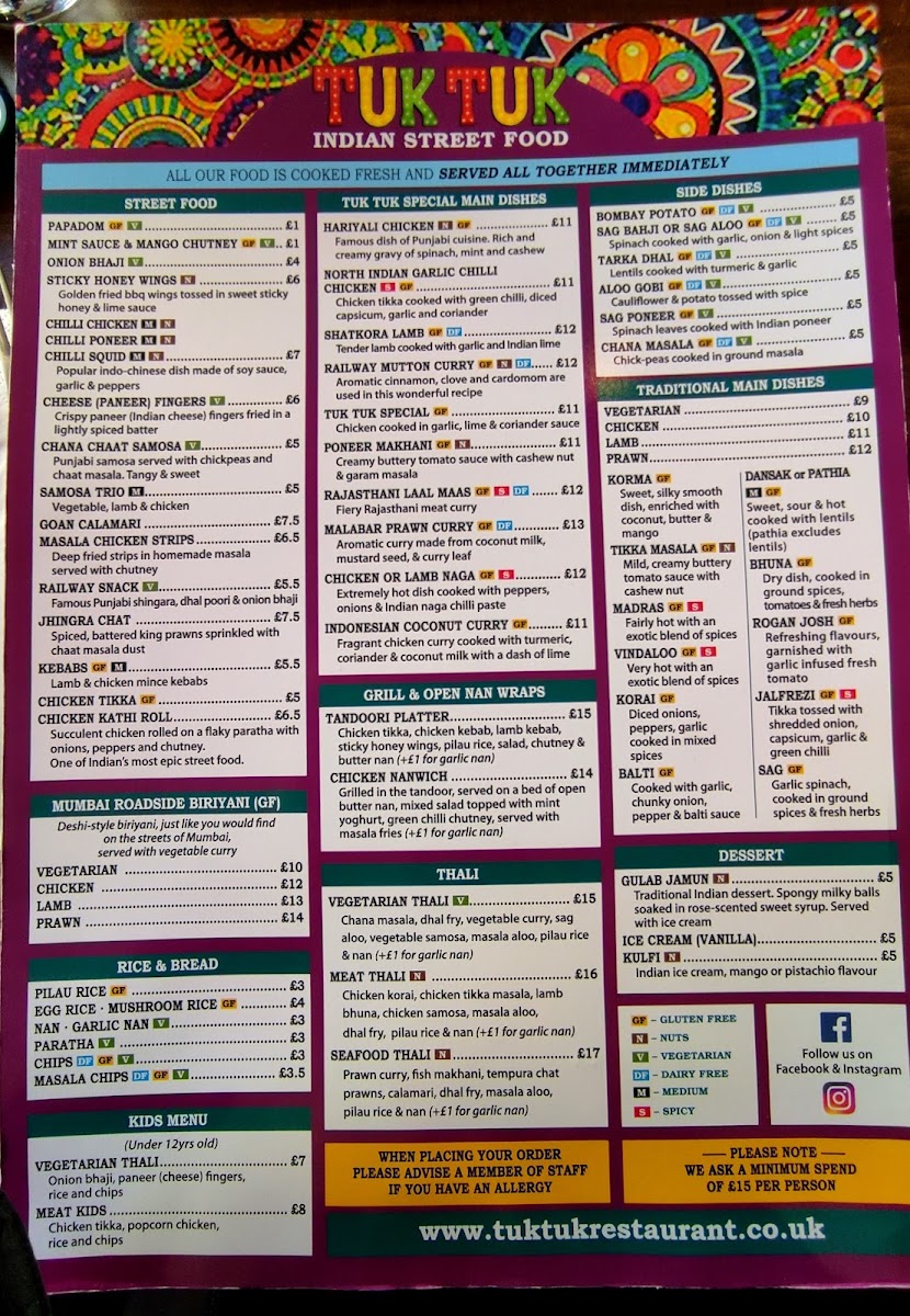 Welcome to Tuk Tuk Indian Street Food, an authentic culinary oasis located at 240 Terminus Rd, Eastbourne. This charming restaurant has received rave reviews for its vibrant dishes and warm atmosphere. The menu features a delightful array of options, including Pilau Rice and Masala Chips, alongside exquisite thalis—both meat and vegetarian—perfect for sharing or sampling various flavors.
